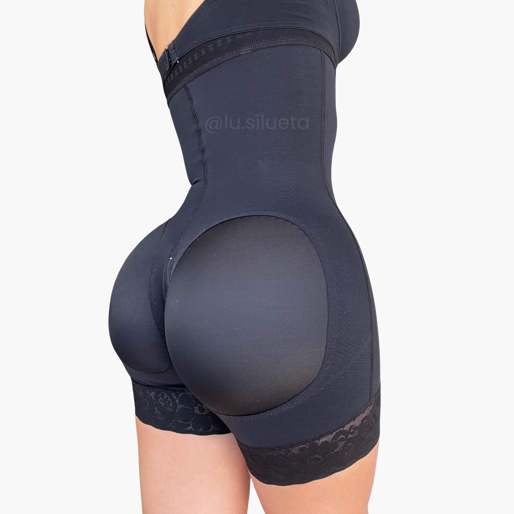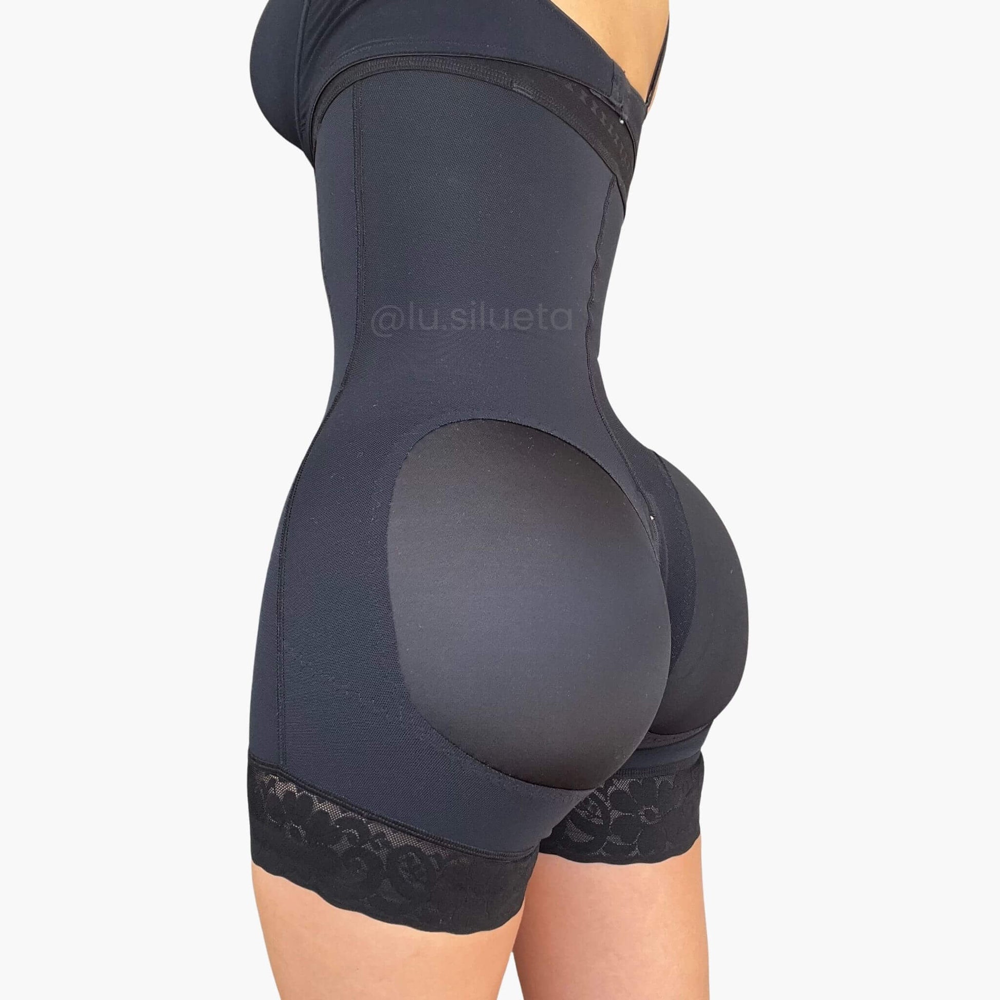 - Realce natural en los glúteos, sin relleno.